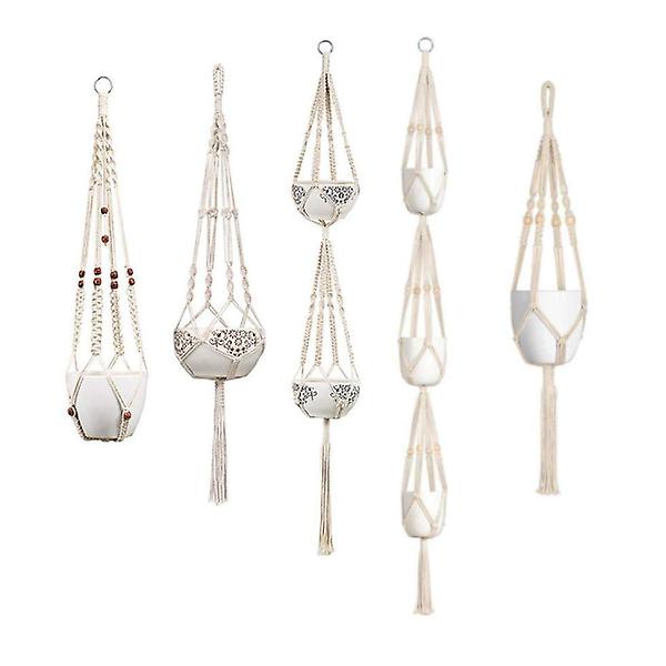 Set Of 5 Macrame Plant Hangers Cotton Rope Hanging Planters Decor Hooks & Hangers