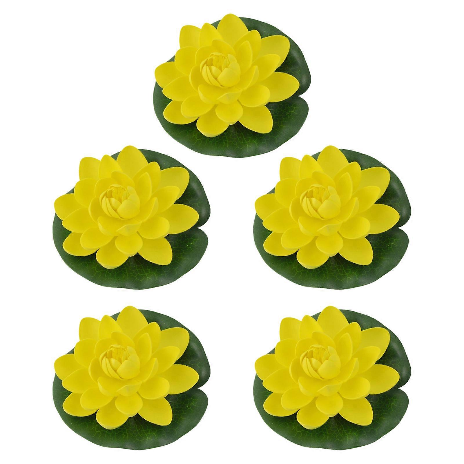 Pack Of 5 Realistic Foam Lilies Pad Waterproof Artificial Plant For Fish Tanks Pond Pool Decorative Landscaping Yellow