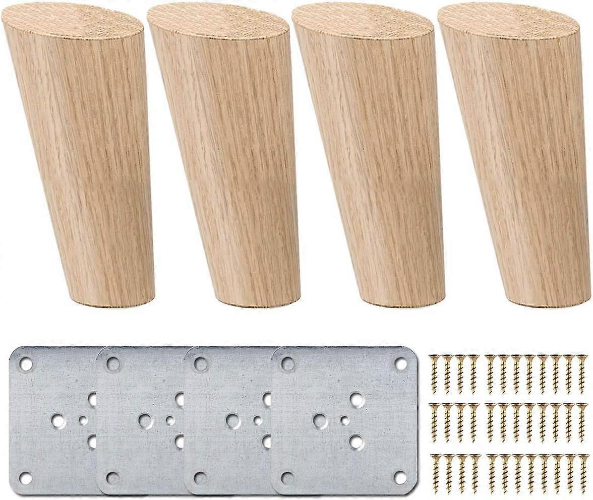 5 Inch Oblique Wood Furniture Legs, La Vane 4 Piece Round Natural Wood Table Legs With Screws & Floor Protector For DIY Furniture Sofa Armchair Couch
