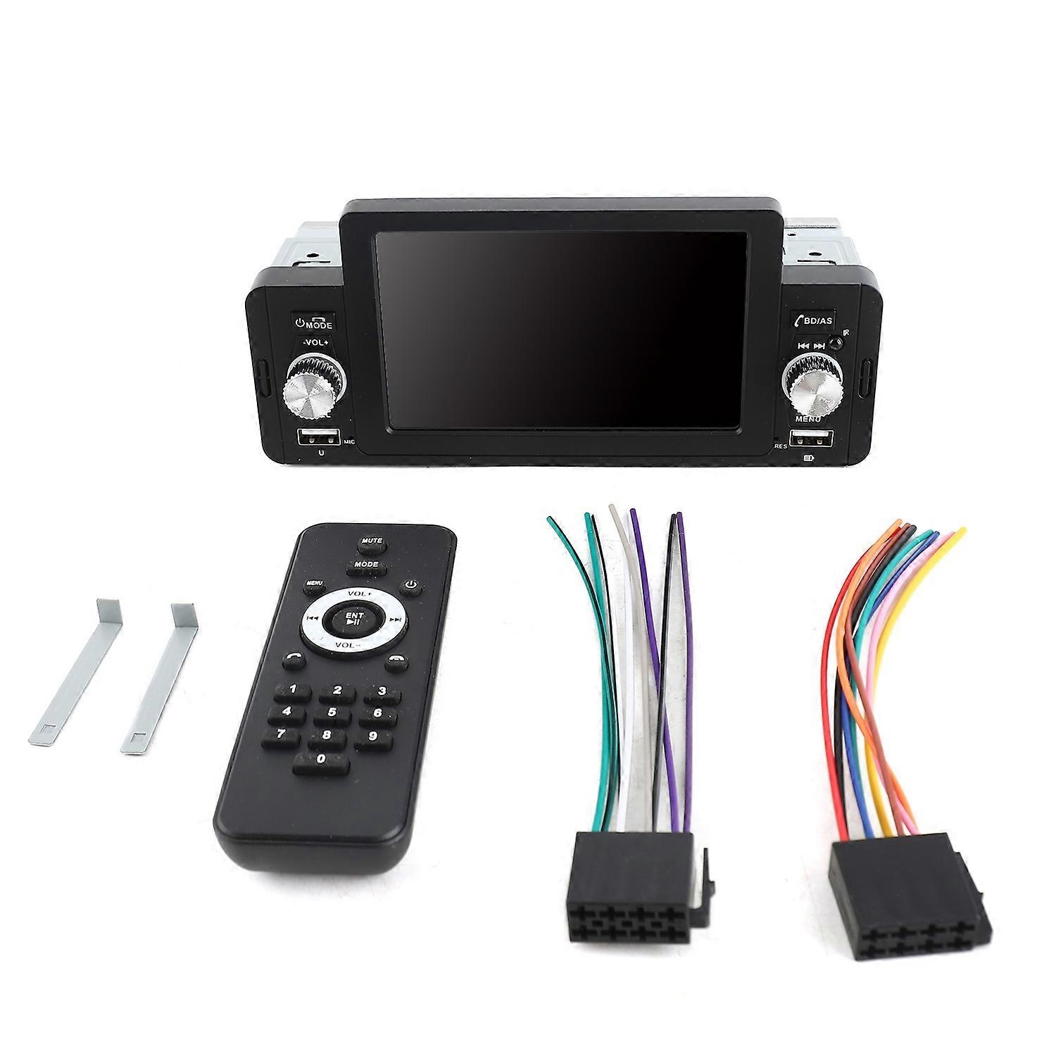 Feature: 1. High-Clear Display: 5 inch car stereo player with high clear capacitive touchscreen, sensitive response, high resolution and easy to operate. With colorful button lights, which making the car interior cooler. 2. BT Connection: Using BT5.1 chip, the signal is more stable, the transmission speed is faster, it can be automatically paired with most phones, and supports hands-free calling and BT audio playback. 3. Phone Link: It supports carplay for IOS phones and Andriod auto for Android phones, supports voice control, frees your hands, allows you to concentrate on road conditions, and makes driving safer. 4. Multifunctional USB Interface: With multiple USB interfaces, it can not only be used to charge USB devices, but also supports playback of audio, video and pictures, and is compatible with a variety of file formats. 5. Reversing Assist: Equipped with an intelligent reversing trajectory system, it automatically switches to the reversing video when there is a signal input, helps you park at the right place quickly and accurately. 6. More Control Methods: Support steering wheel control, map the buttons on the steering wheel to the player, and operate without having to leave the steering wheel with both hands. Delivery also comes with a remote controller, which is more convenient to operate. Specification: 5-inch portable car player with high-clear digital touchscreen, BT connection, support carplay and Android Auto, free your hands and make driving safer. Reversing assist is supported to help you park your car in the right place. Features: High-Clear Display: 5 inch car stereo player with high clear capacitive touchscreen, sensitive response, high resolution and easy to operate. With colorful button lights, which making the car interior cooler. BT Connection: Using BT5.1 chip, the signal is more stable, the transmission speed is faster, it can be automatically paired with most phones, and supports hands-free calling and BT audio playback. Phone Link: It supports carplay for IOS phones and Andriod auto for Android phones, supports voice control, frees your hands, allows you to concentrate on road conditions, and makes driving safer. Multifunctional USB Interface: With multiple USB interfaces, it can not only be used to charge USB devices, but also supports playback of audio, video and pictures, and is compatible with a variety of file formats. Reversing Assist: Equipped with an intelligent reversing trajectory system, it automatically switches to the reversing video when there is a signal input, helps you park at the right place quickly and accurately. More Control Methods: Support steering wheel control, map the buttons on the steering wheel to the player, and operate without having to leave the steering wheel with both hands. Delivery also comes with a remote controller, which is more convenient to operate. Specifications: Screen Size: 5 Inch Resolution: 800x480 Working Voltage: 12-14.4V Output Power: 60W * 4 Radio Frequency: FM 87.5-108.0MHz Reversing Picture: Support Play Video Warning: Support Audio Format: MP3/WMA/AAC/APE/OGG/M4A/RA/WAV Video Format: H264/H265/DIVXHD(720P 1080I 1080P)AVI/FLV/MKV/RMVB/MP4/WMV9/VC/ASF/TS/QT Picture Format: JPEG/PNG/BMP/GIF/TIFF Language: English, Chinese, Spanish, Portuguese, Russian, German, French, Polish, Turkish, Arabic, Hebrew, Italian, Czech, Japanese Working Temperature: -10-60℃ Item Size: 188 * 82 * 50mm/ 7.4 * 3.2 * 2.0in Package Size: 203 * 113 * 170mm/ 8.0 * 4.4 * 6.7in Package Weight: 630g/ 22.2oz Packing List: 1 * MP5 Player 1 * Remote Controller 1 * Power Cable 1 * Speaker Cable 1 * Manual Package List: 1 * MP5 Player 1 * Remote Controller 1 * Power Cable 1 * Speaker Cable 1 * Manual