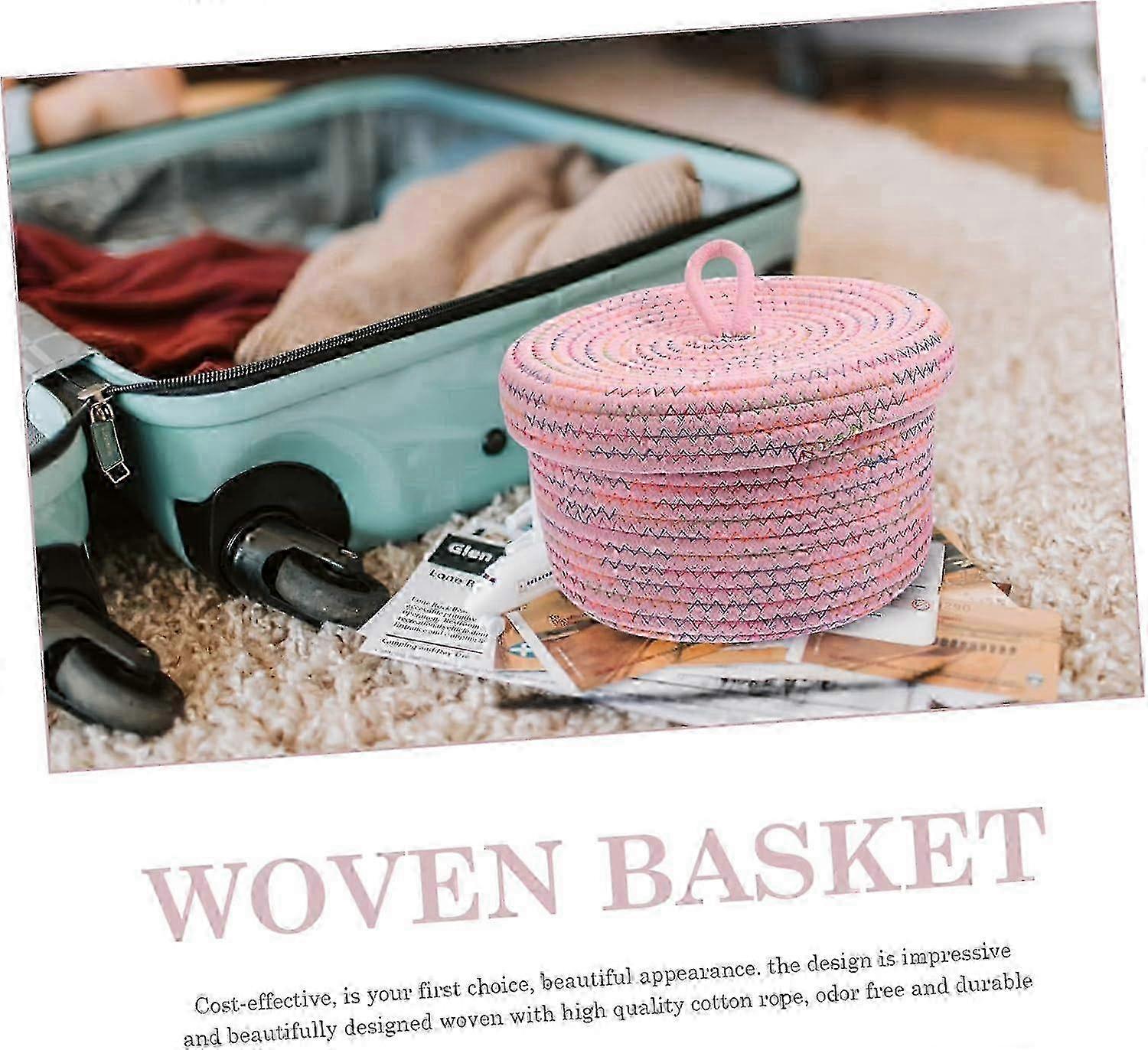 5-Inch Cotton Rope Storage Basket - Lidded Organizer for Small Items