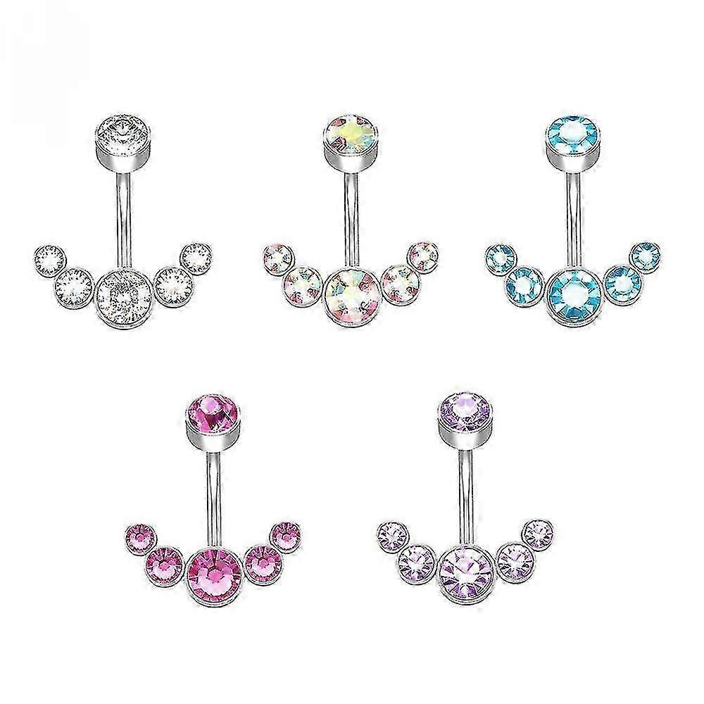 5 Crystals Belly Button Rings For Women Girls 316l Surgical Steel Curved Navel Barbell 14g Dangled Body Jewelry Piercing Ombligo