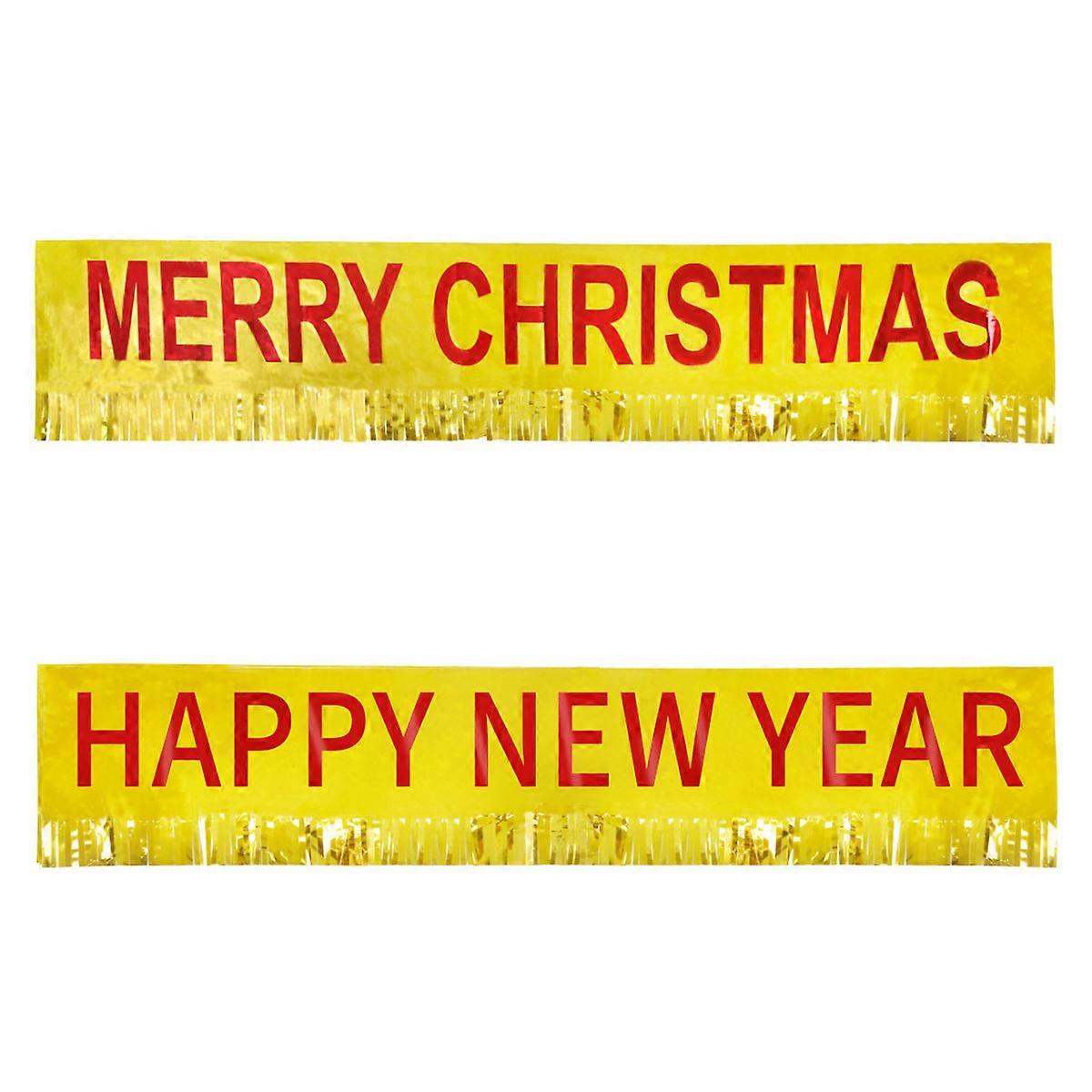 5 Sets New Year Banner Xmas Garland Fireplace Banner Merry Wall Banner Edge Trim Tassel Garland Banner for Village Home Room Party Decor(Gold)