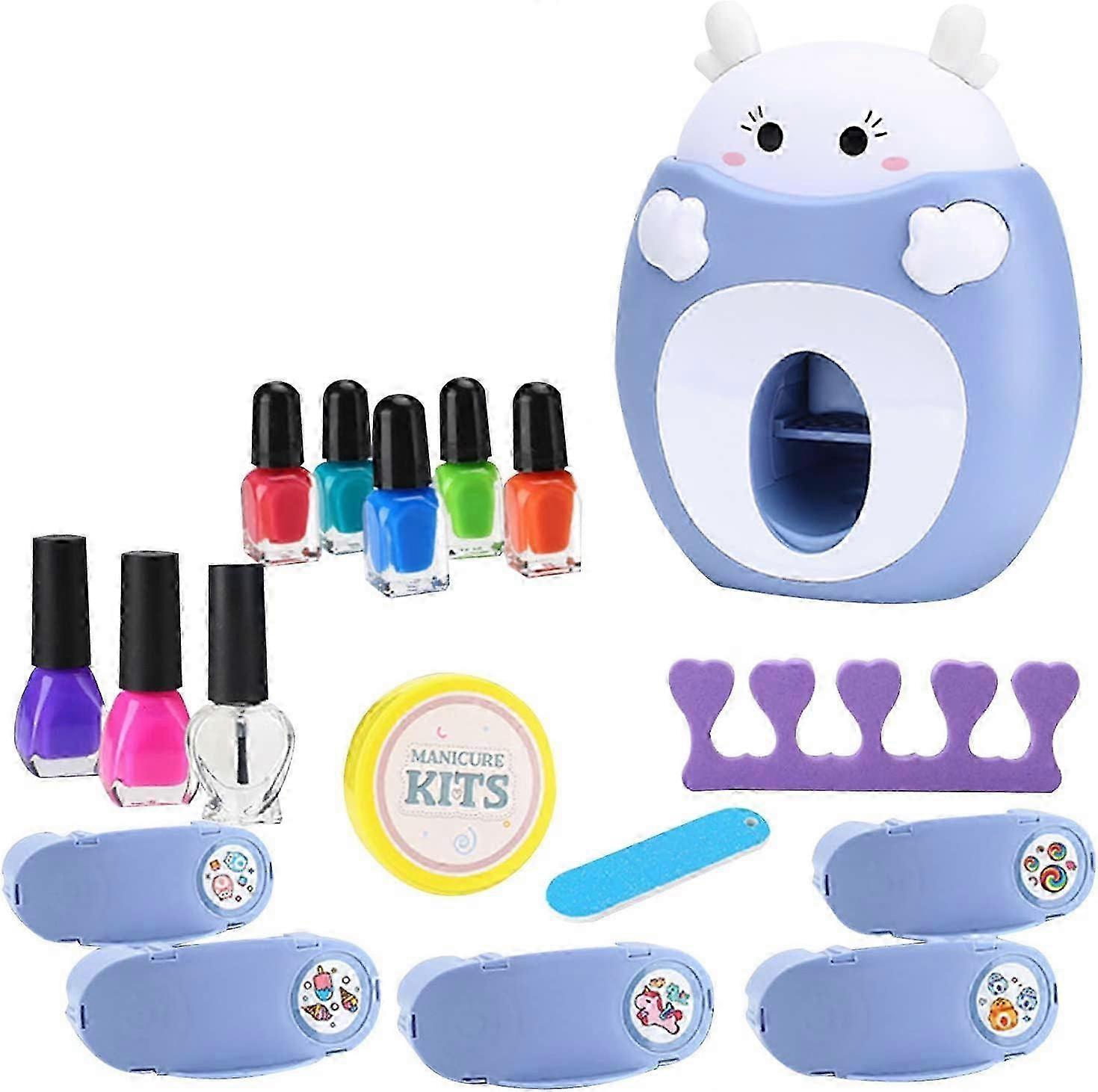Portable Nail Art Set for Children Featuring 5 Patterned Nail Polish Stamps Toe Separators and Nail Polish Remover