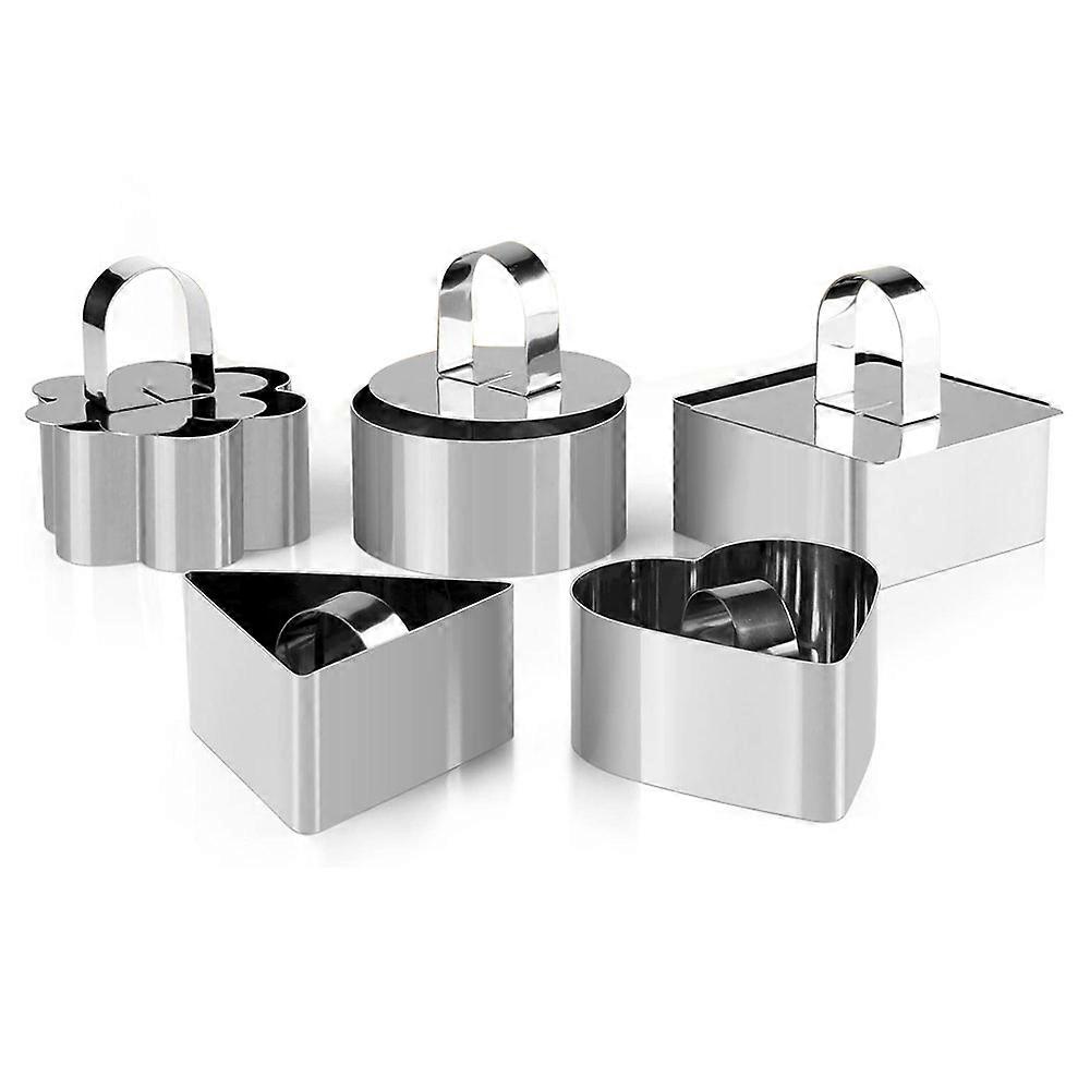 5 Pack Cake Ring, Stainless Steel 3 x 3 inch Square Dessert Mousse Mold with Pusher & Li