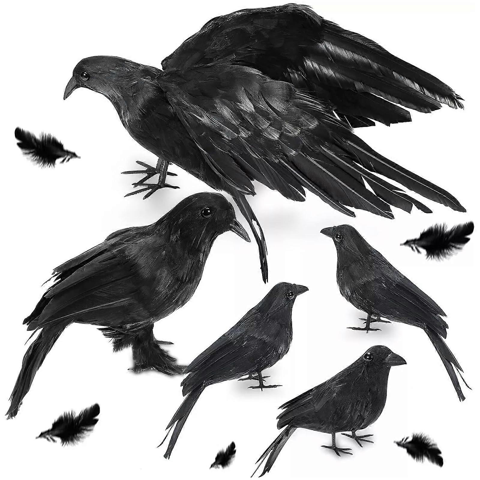 5Pack Halloween Crow Decorations Handmade Realistic Black Feathered Lifesize Fly
