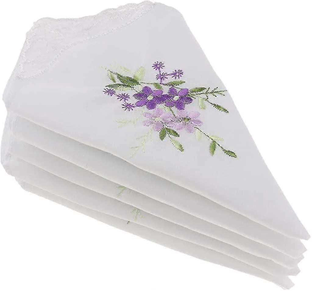 5 Pack Women Ladies Cotton Handkerchiefs Floral Embroidered With Lace Butterfly Edge Y