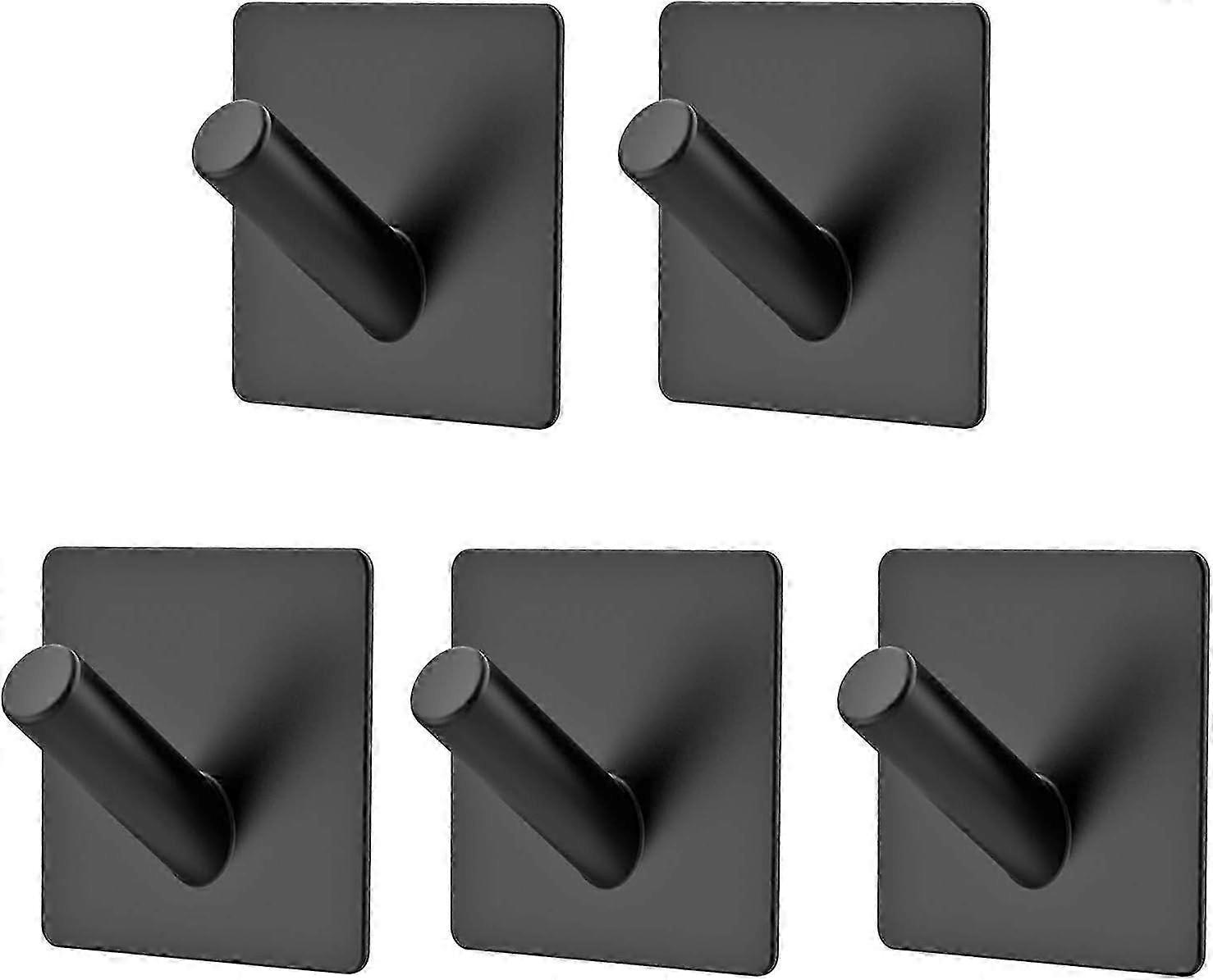 5 Pack Self Adhesive Wall Hooks, Stainless Steel Coat Hooks, Brushed Stainless Steel Towel Rack, No Drill Kitchen and Bathroom Hooks