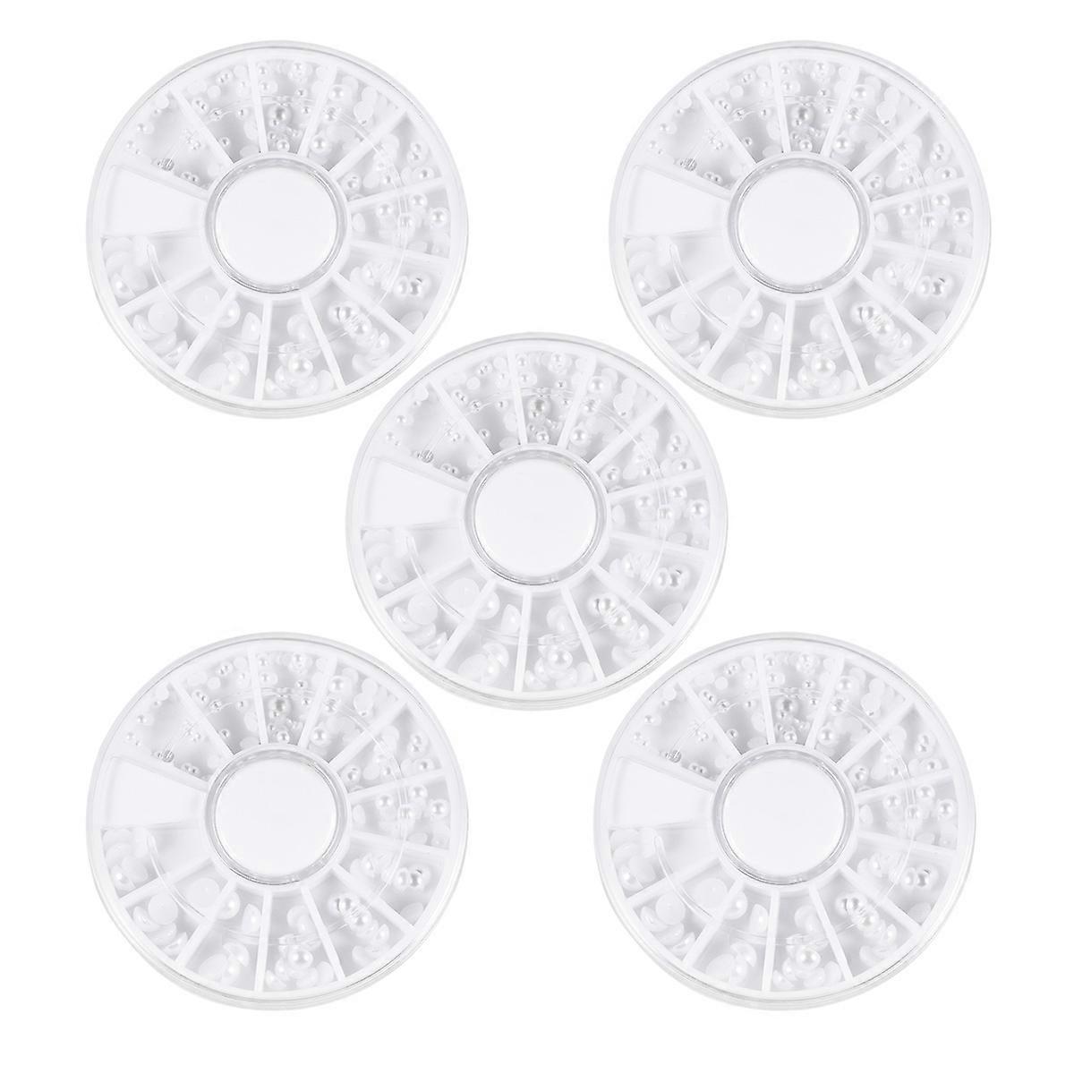 5 Pack 12 Grid Nail Art Decor Accessories Half Circle Synthetic Pearls Set Multi-size Manicure Crafts Tools Mini Patch for Women Ladies DIY Salon Supp