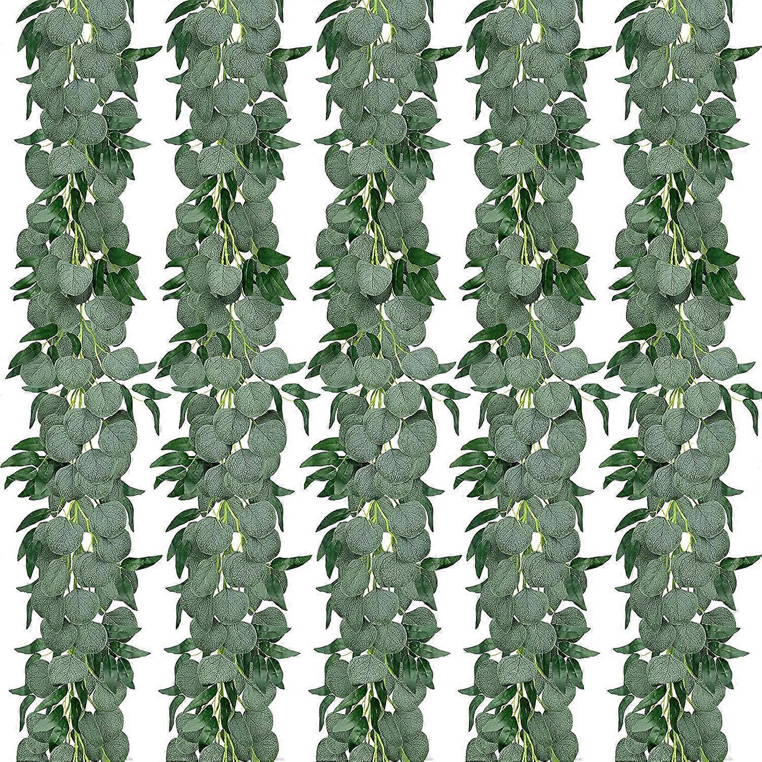 5 Pack 5.9ft Artificial Eucalyptus Garland with Willow Leaves Greenery Garland Faux Silver Dollar Garland for Wedding Centerpiece Party Table Decor In