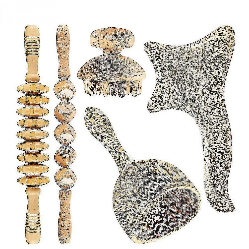 5pcs/set Wood Therapy Massage Tools Maderoterapia Colombiana Lymphatic Drainage Massager Roller Ther