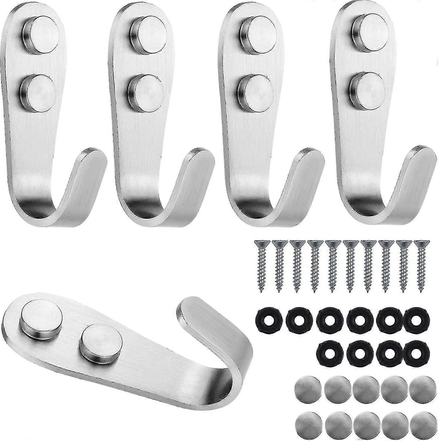 5 Piece Robe Hooks Stainless Steel Heavy Duty Wall Hooks Towel Hooks J Hooks With Screws
