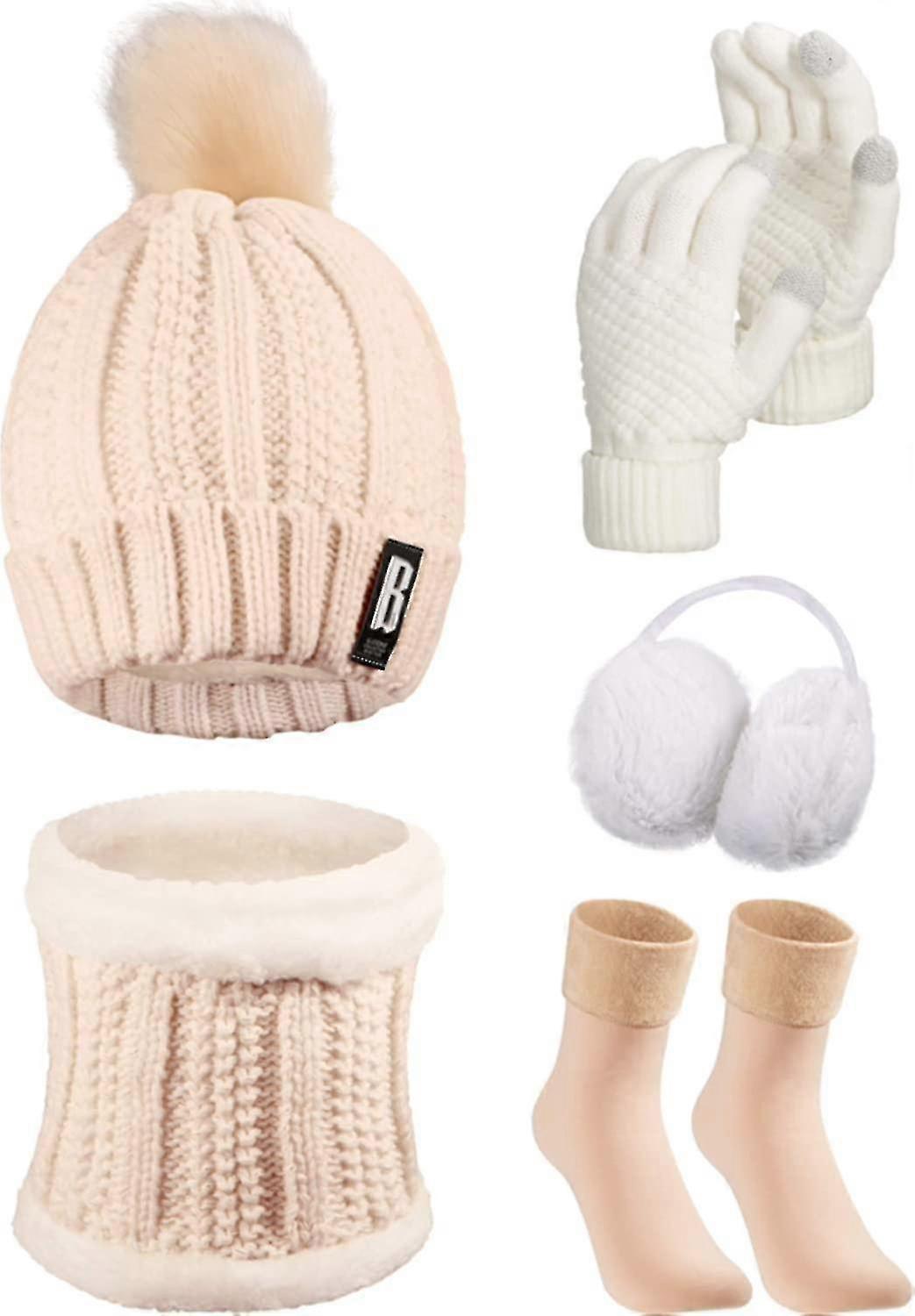 What you receive: 5 pieces women winter ski outing set includes knit hat, winter knit scarf, warmer gloves, winter outdoor earmuffs and thick fleece lined stocking, a good combination for your outdoor activities in winterWindproof hat and scarf: made of thick and comfortable knitted acrylic fibers, the knit hat and scarf are soft and warm with a soft fleece lining, thick and tight knit with great elasticity which can cover your head and neck tightly, works well against wind and dust in cold daysConvenient gloves: with touch screen fingers on the thumb, index and middle finger, this warm gloves can ensure that you can use the electronic devices without taking off the gloves, protecting your hands in cold weatherThick earmuff and stockings: the outdoor earmuff and fleece lined stockings are made of comfortable material which can cover your ears and feet warm without pressure, making a good warm set with hat, scarf and gloves to keep you from the coldWide applications: this warm set enables you to withstand a winter of minus 20 degrees, very practical to use when skiing, mountain climbing, running, biking, and other outdoor activities in the cold weather and you can also take them as thoughtful gifts for family members and beloved friends