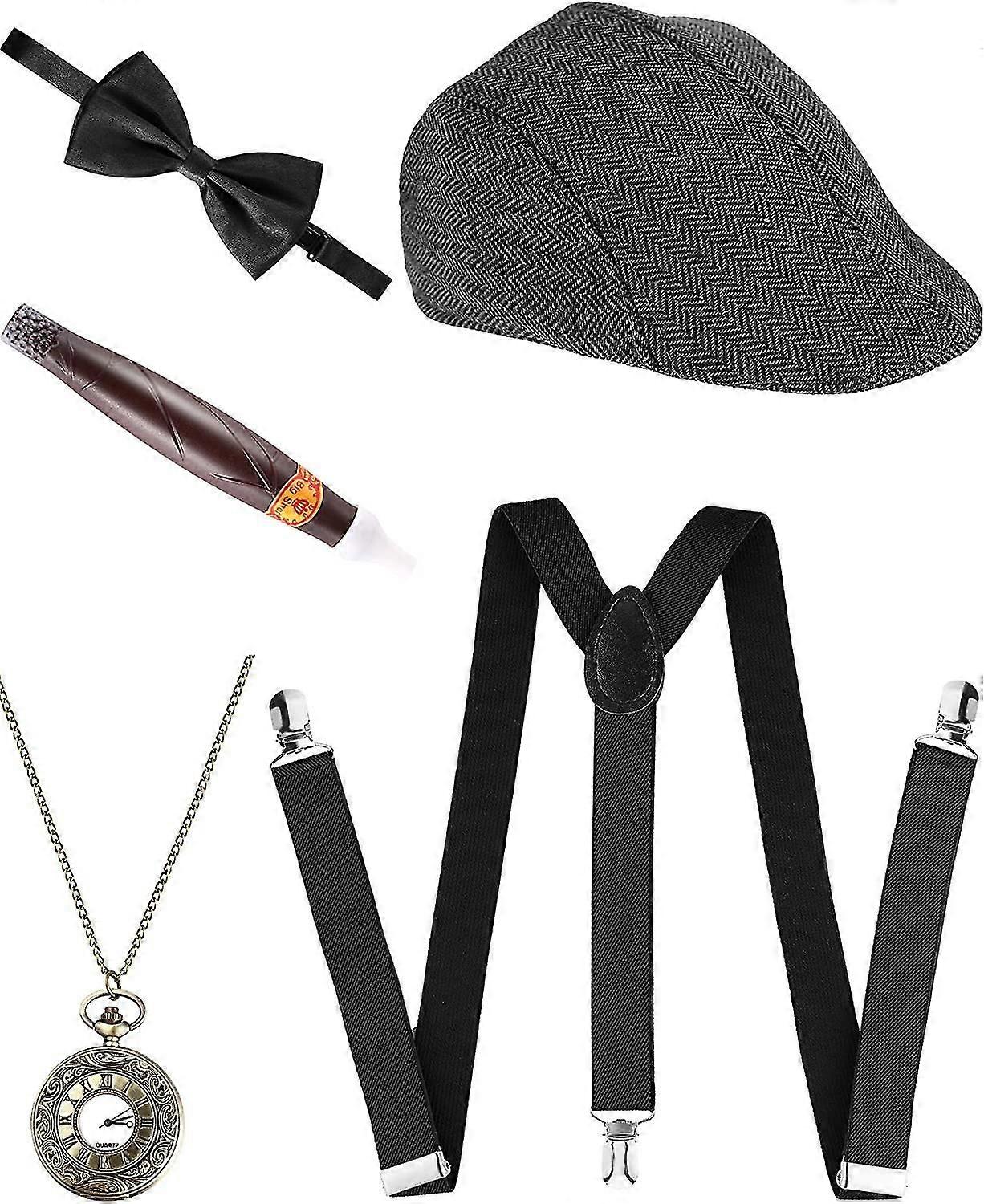 5 Piece Mens 1920s Gatsby Gangster Costume Accessories Set 30s Manhattan Gangster Beret Y-back Suspender