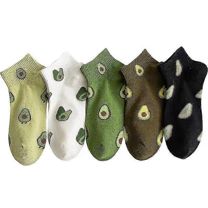 5 Pairs Avocado Short Socks, Sweat-Absorbent Printed Socks, Super Soft Cotton Ankle Socks, Funny Fruit Pattern Low Cut Socks, Breathable Embroidered S
