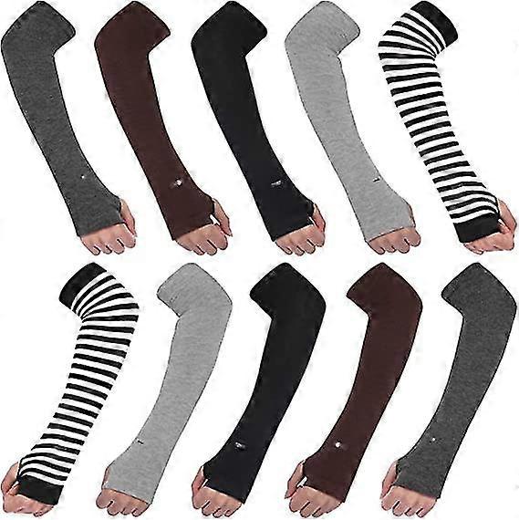 5 Pairs Arm Warmers Knitted Thumb Hole For Women, Winter Wrist Long Gloves Fingerless Mittens Happy H