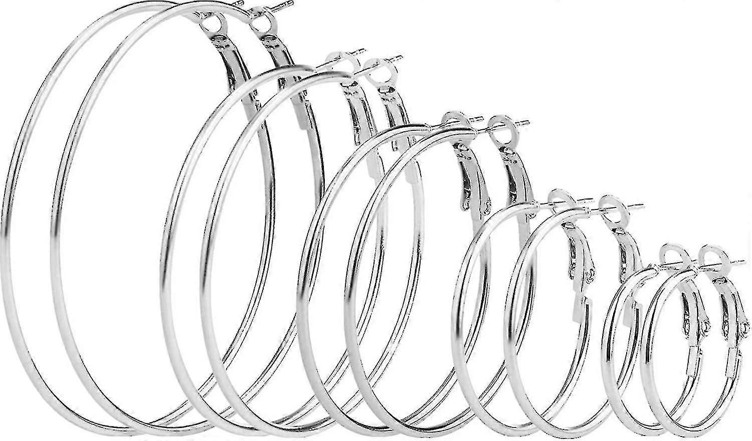 5 Pairs Stainless Steel Hypoallergenic Shiny Large Hoop Earring Sets For Women Girl Silver
