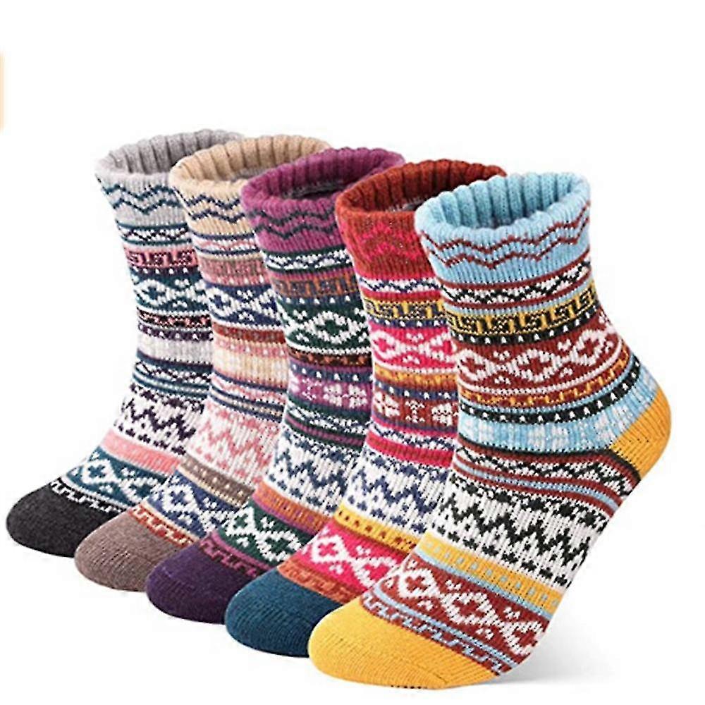 5 Pairs Womens Thick Socks Wool Thermal Warm Knitting Nordic Ladies Socks Winter