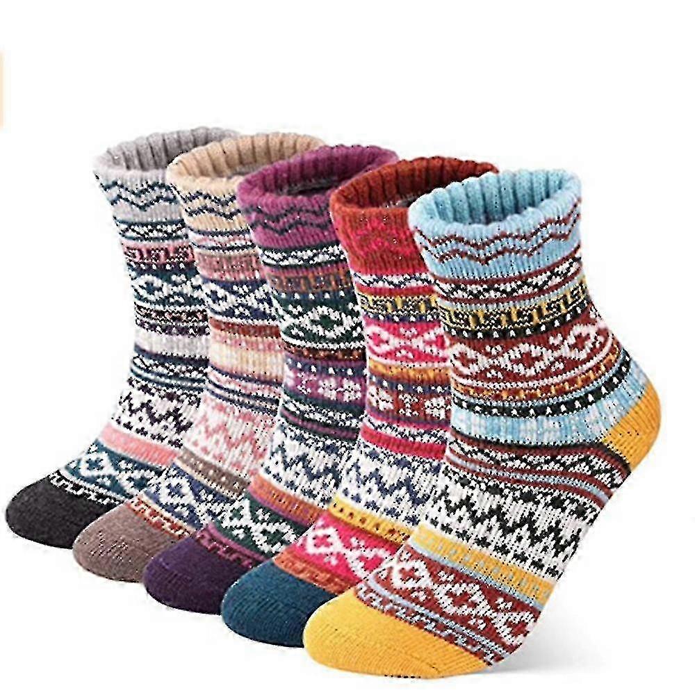 5 Pairs Womens Thick Socks Wool Thermal Warm Knitting Nordic Ladies Socks Winter