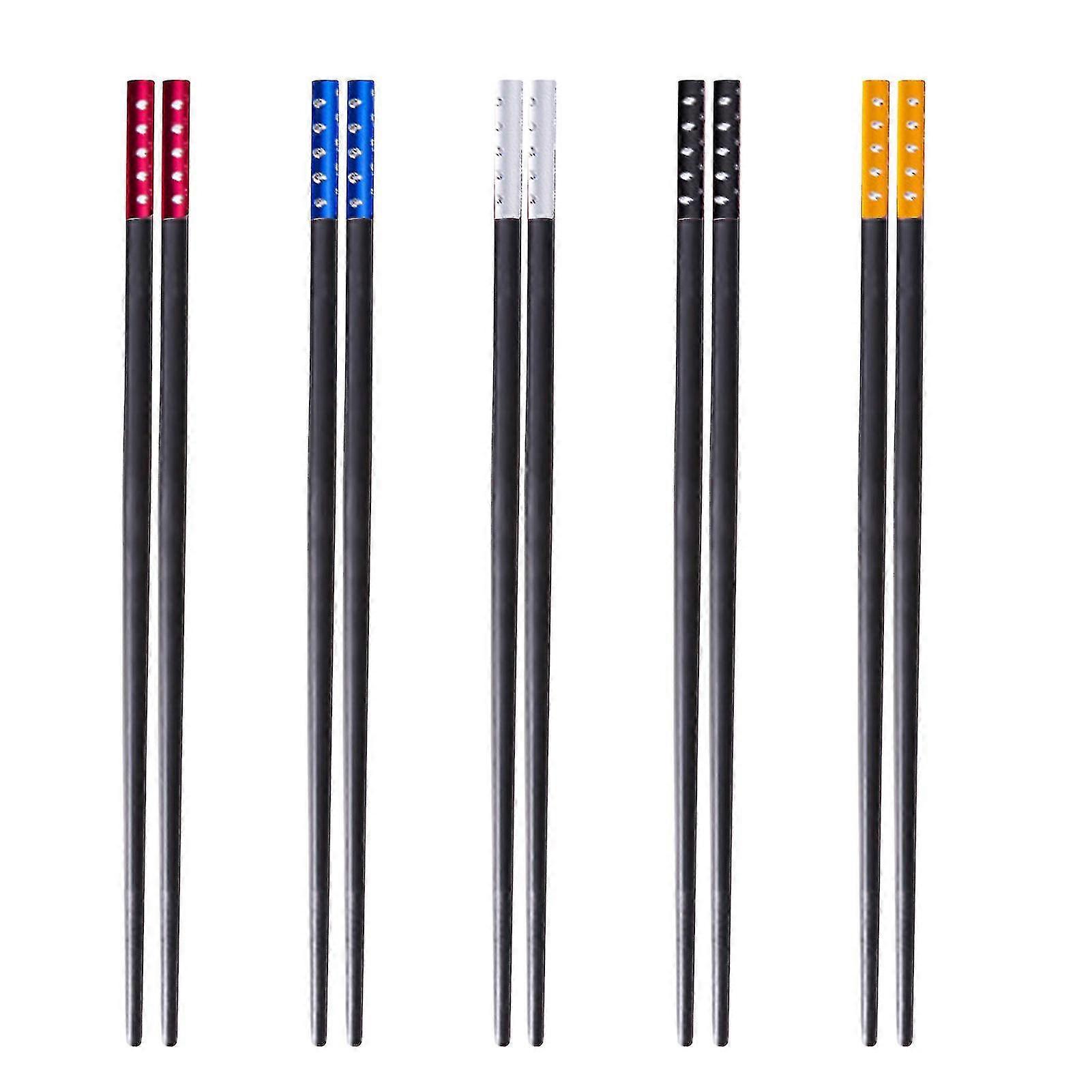 5pairs Alloy Tip Family Japanese Fiberglass Reusable Chopsticks Kitchen Cook
