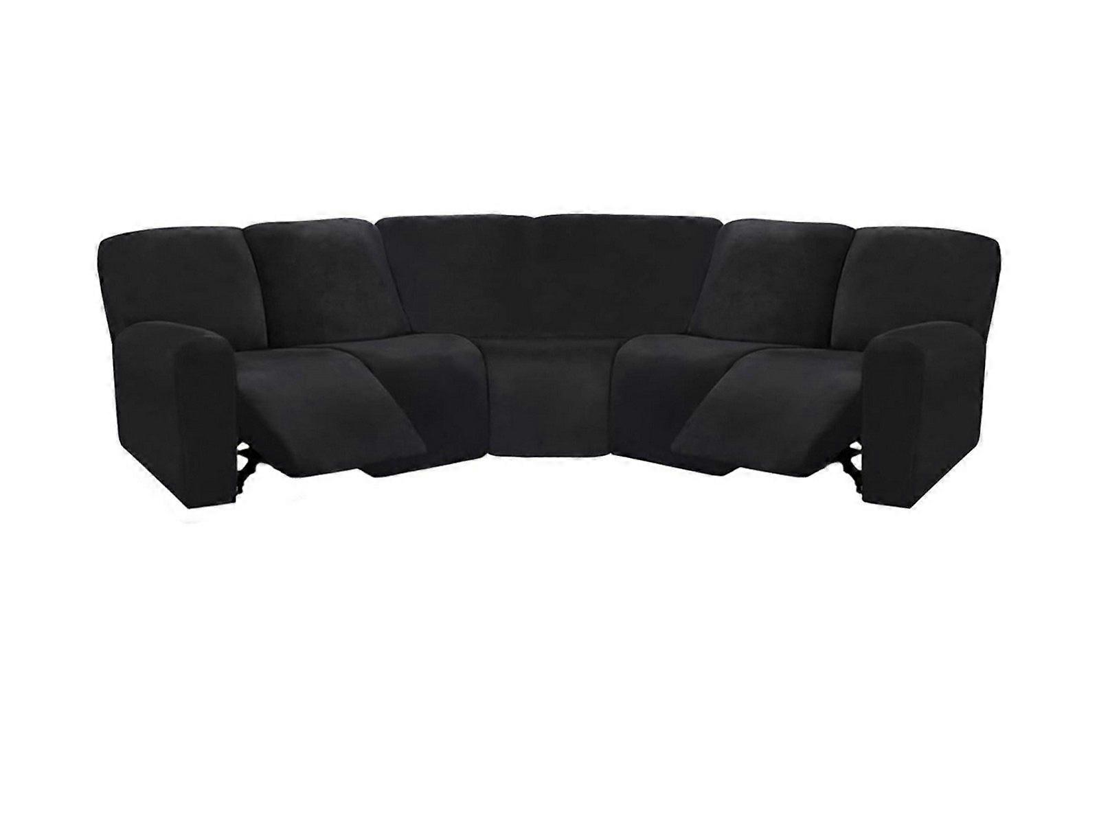 Stretch Sectional Recliner Sofa Covers for 5-seat Corner Couch - Black