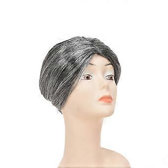 5Pcs Old Lady Costume Granny Wig Grandma Glasses with Chain Faux Pearl Necklace, Gray Wig