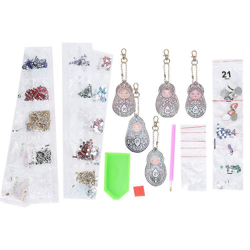 5Pcs Keychain Diamond Painting Matryoshka Doll Pattern DIY Resin Key Ring Luggage Pendants