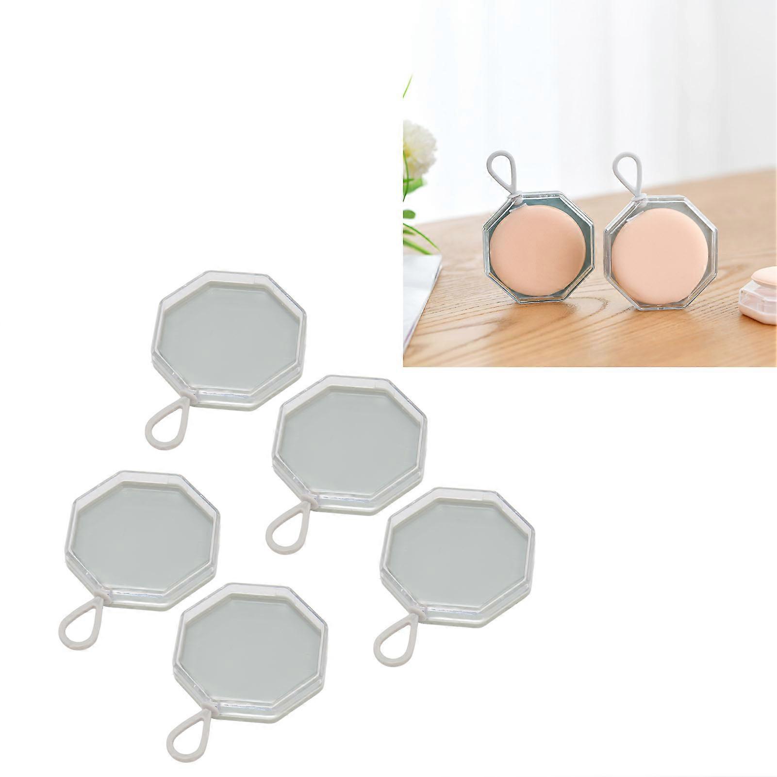 5pcs Gray Octagonal Plastic Powder Puff Storage Box Container