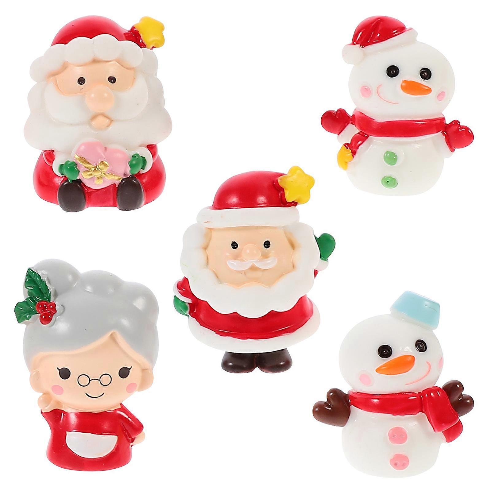 5pcs Christmas Mini Resin Ornaments Santa Claus & Snowman Statues for Desktop, Office & Mini Playhouse Decoration