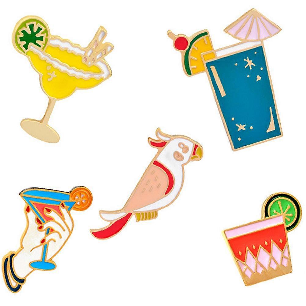 5pcs Hawaii Style Alloy Brooch Pins Cartoon Summer Design for Clothes, Hats & Scarves Unique Fashion Jewelry Accessories for Women