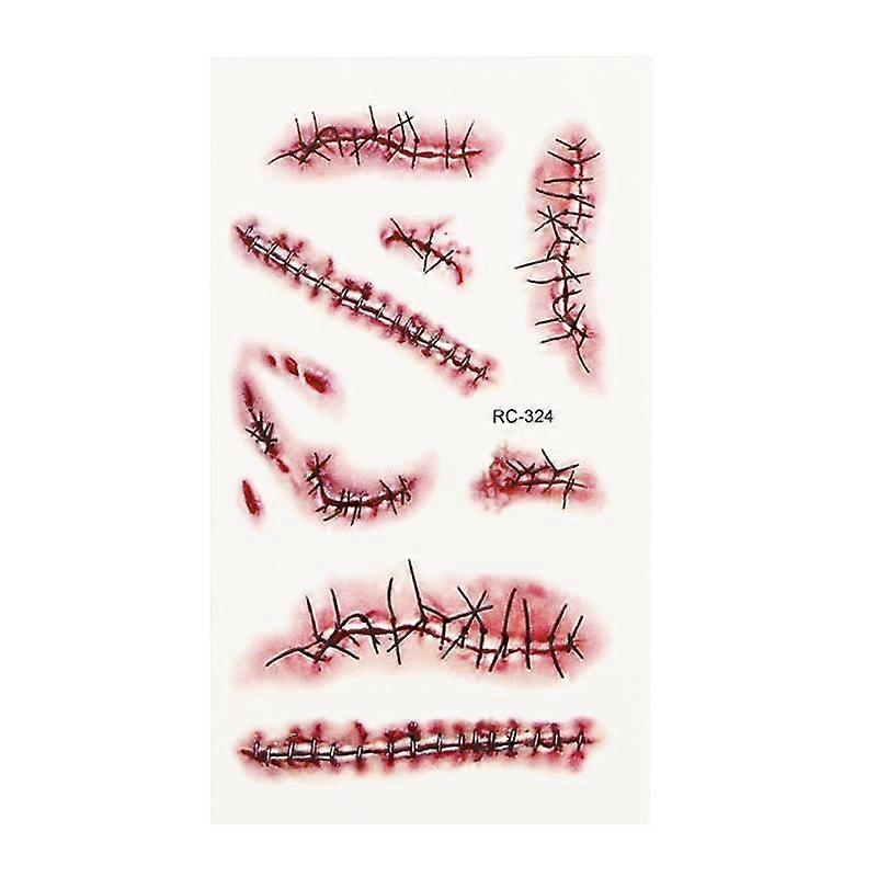 5Pcs Body Makeup Tattoo Stickers Halloween Simulation Horror Bleeding Suture Scars Stickers Diy Halloween Decoration Party Supplies