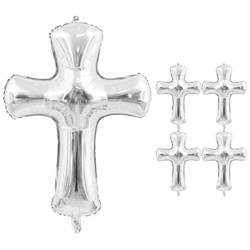 5Pcs Cross Shaped Aluminum Foil Balloon Baby Shower Balloon Decor Baptism Cross Balloon Prop