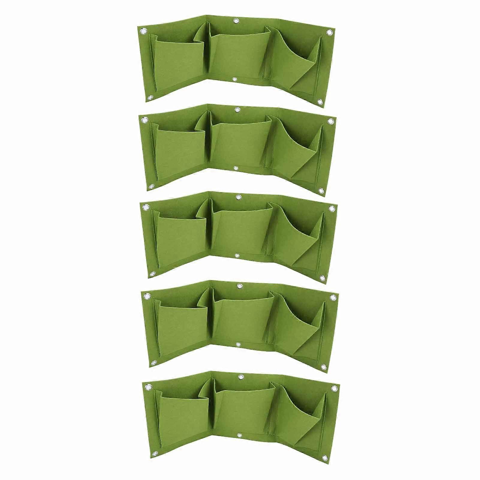 5Pcs Plant Growing Bags Wall Mounted Degradable 3?Pockets Planter Garden AccessoryGreen
