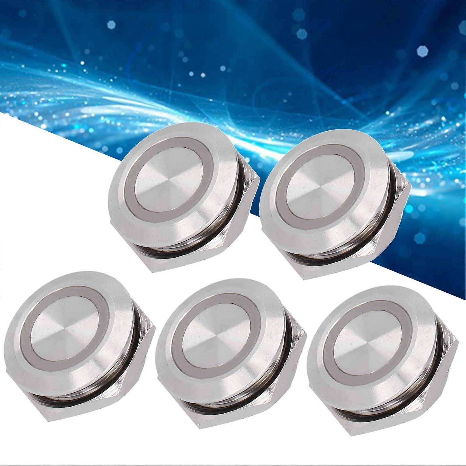 5Pcs Momentary Push Button Switch Metal Auto Reset Ultra Thin Waterproof with LED 19mmDC3~6V Red Item Type: Momentary Push Button Switch Material: Stainless steel Specification: Approx. 19mm / 0.7in Button Stroke: ≤ Approx. 0.5mm / 0.02in Insulation Resistance: ≥50mΩ Contact Resistance: ≤50mΩ Operation Type: Self reset Contact Form: One normally open Connection Method: Soldering feet Purpose: Used to control the start and stop of various equipment Applicable Scenarios: Widely used in devices that use instantaneous switches such as automobiles, trucks, ships, ignition systems, household doorbells, etc.