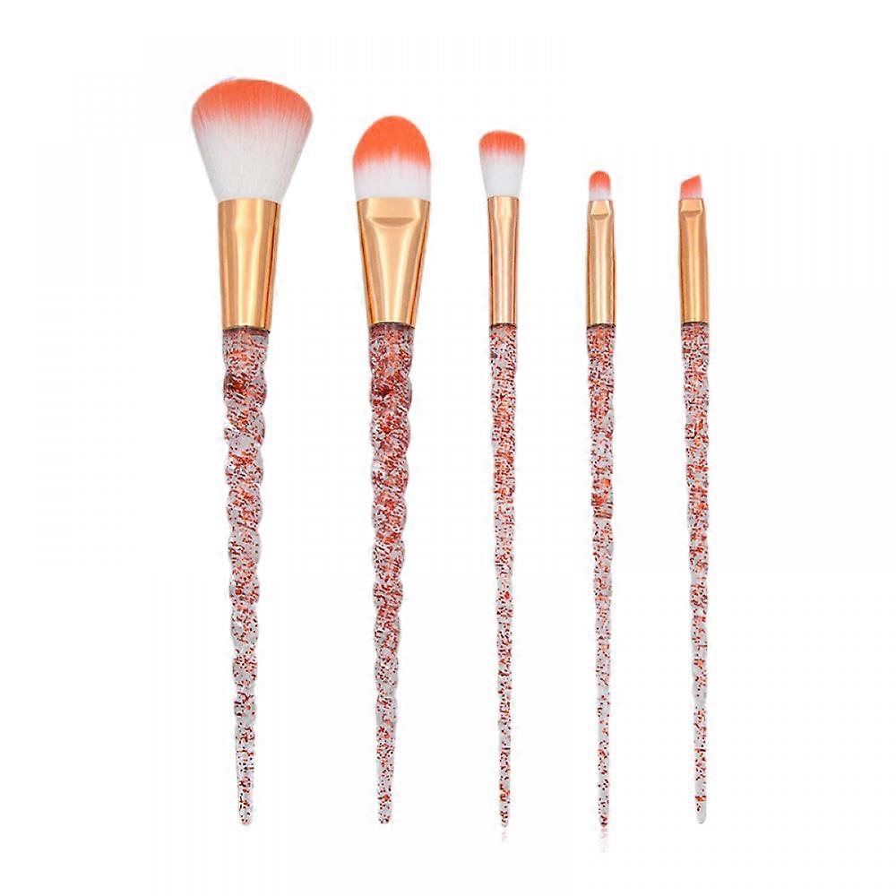 5 pcs Transparent Unicorn Makeup Brushes, Orange Gypsophila Spiral Handle Loose Powder Foundation Set Beauty Makeup Tools