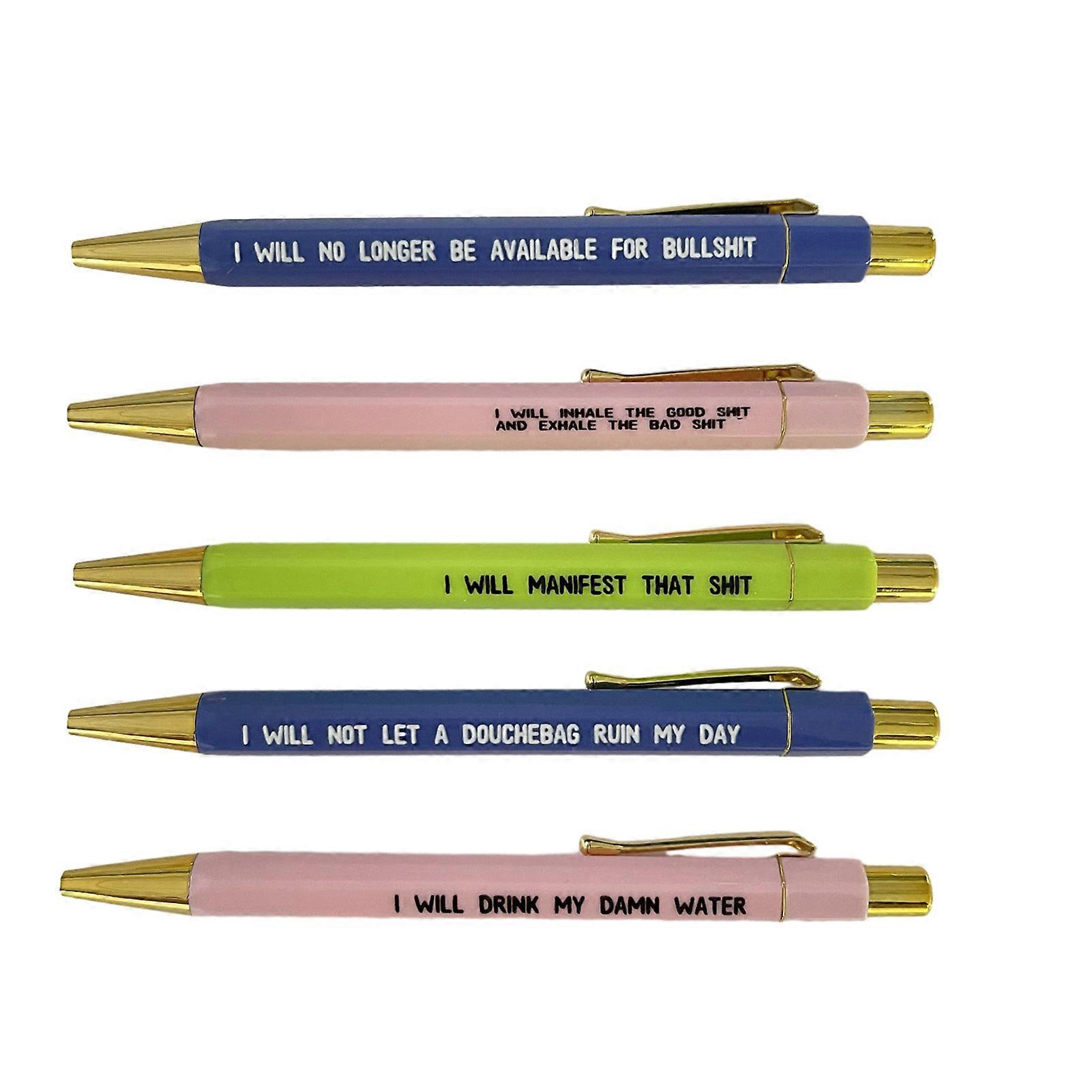 5Pcs Funny Words Ballpoint Pen Fine Point Plastic Comfortable Grip Smooth Writing Press Retractable Pen School Stationery Student Gift QingHai
