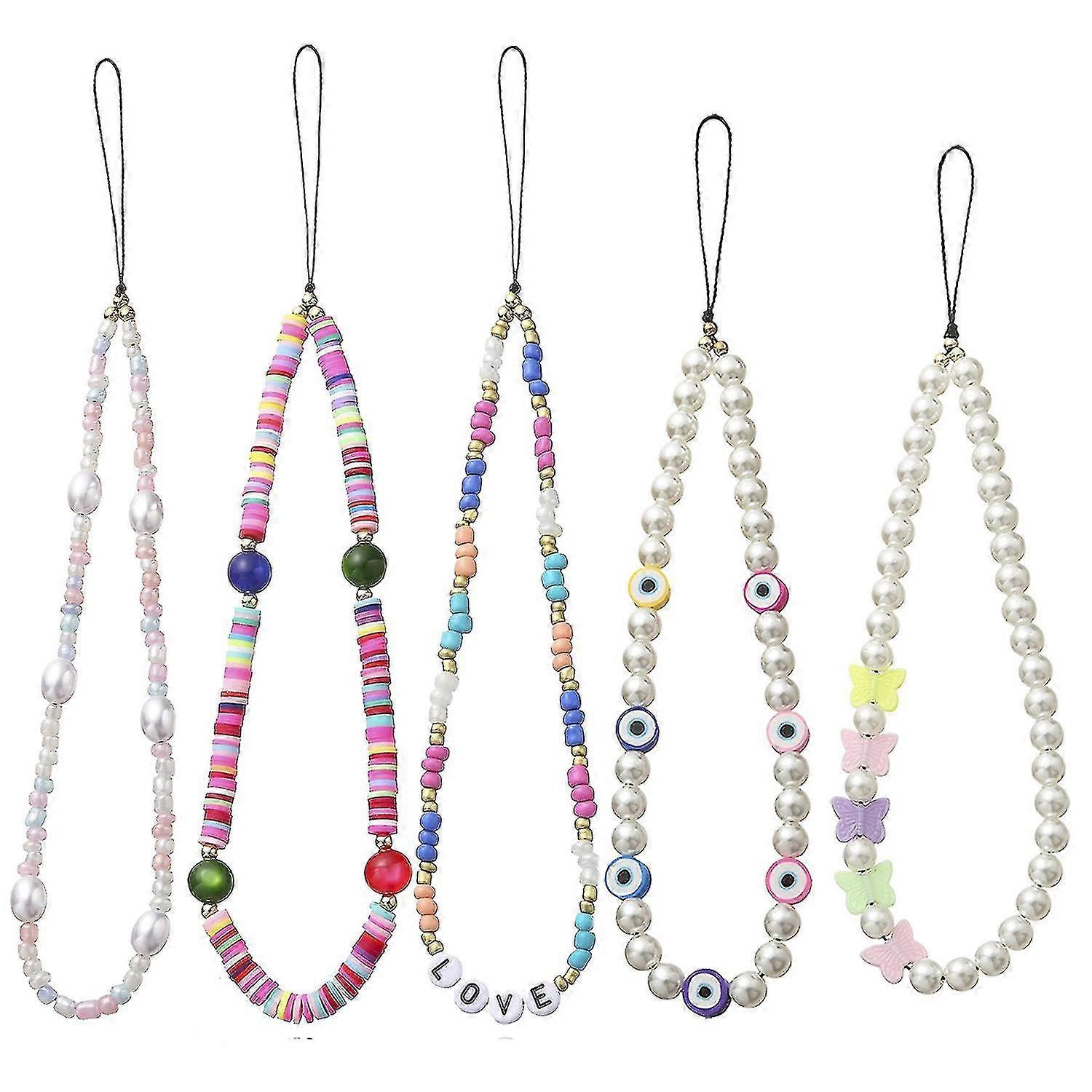 5Pcs Colorful Rainbow Beaded Phone Lanyard Chain Charm Wrist Strap Wuqx