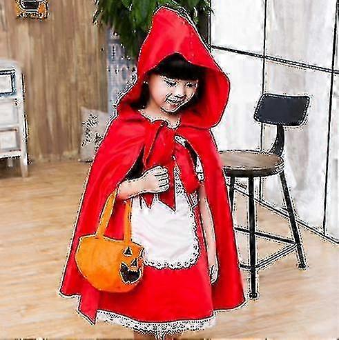 5pcs/set Kids Adults Little Red Riding Hood Girls Dress+apron+cloak+headband+pumpkin Bag Cosplay Set