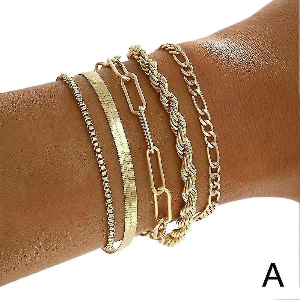 5Pcs/Set Fashion Thick Chain Link Bracelets Set For Women Gold Color