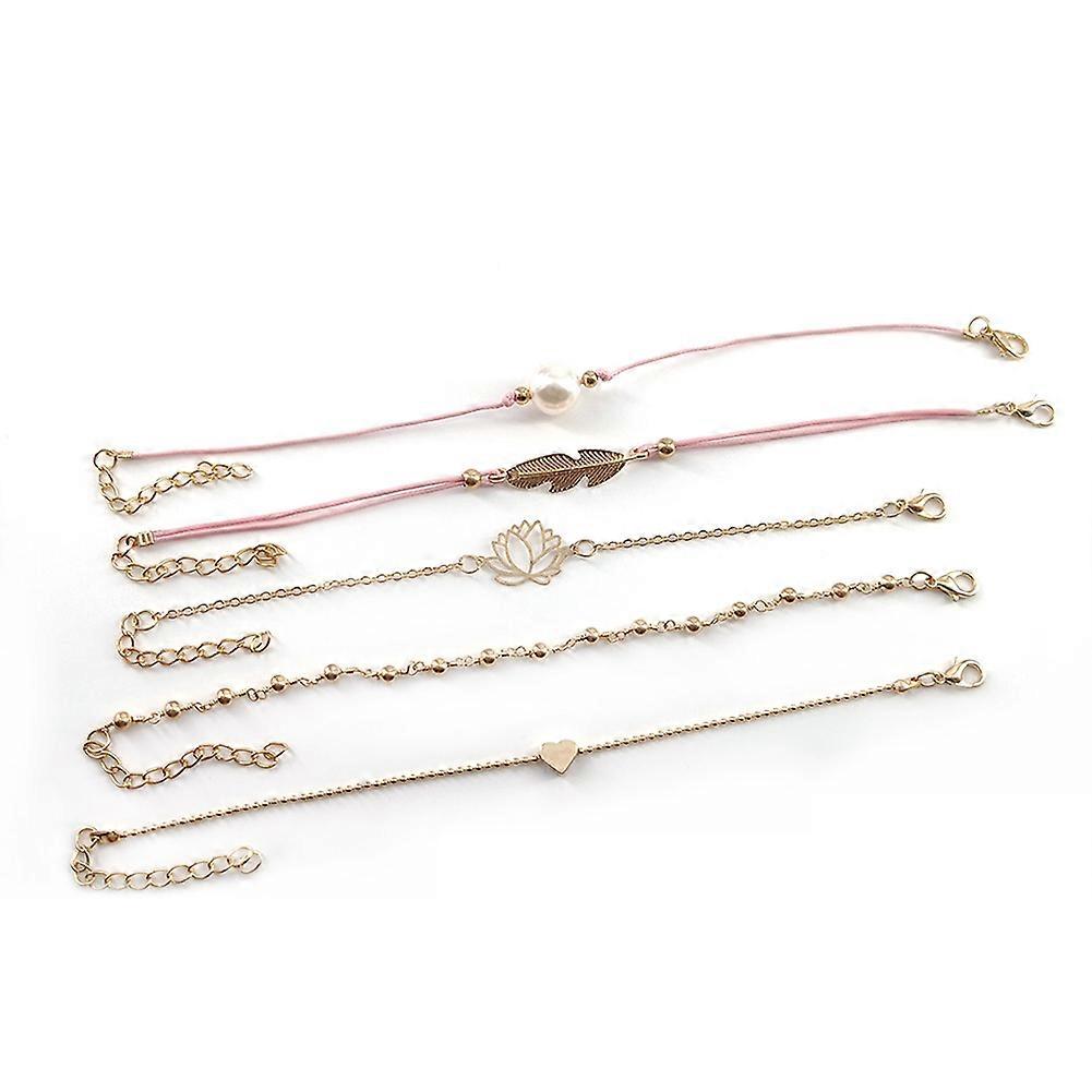 5pcs/set Fashion Alloy Bracelet with Heart Shape Faux Pearl Decoration Jewelry Gift