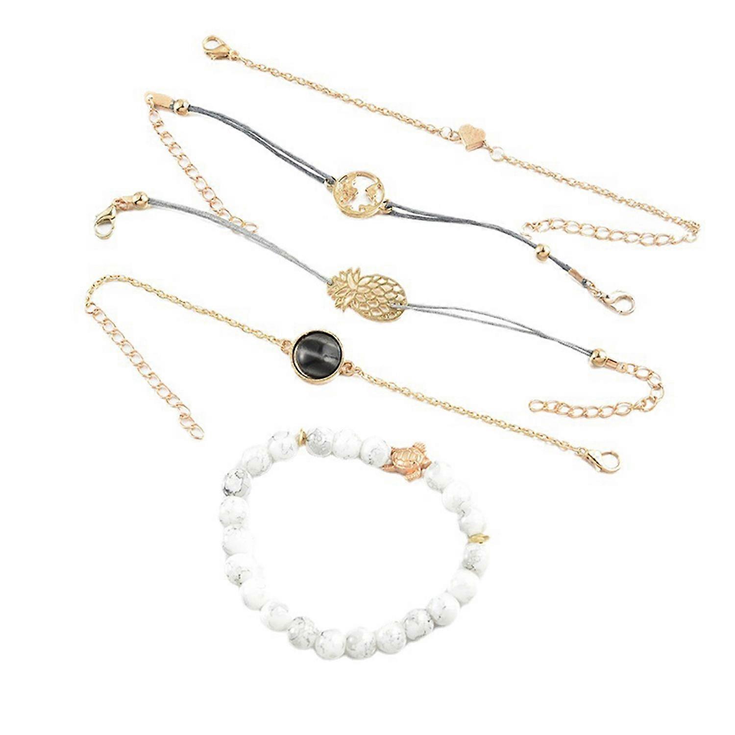 5 Pcs/Set Women Bracelet Set Different Pendants Chain Pineapple Turtle Heart Beads Rxquisite Wrist