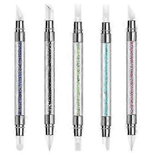 5 pcs Nail Art Sculpture Pen Double-sided Silicone Nail Tool Rhinestone Nail Polish Carving Pen Rubber Tip Nail Brushes