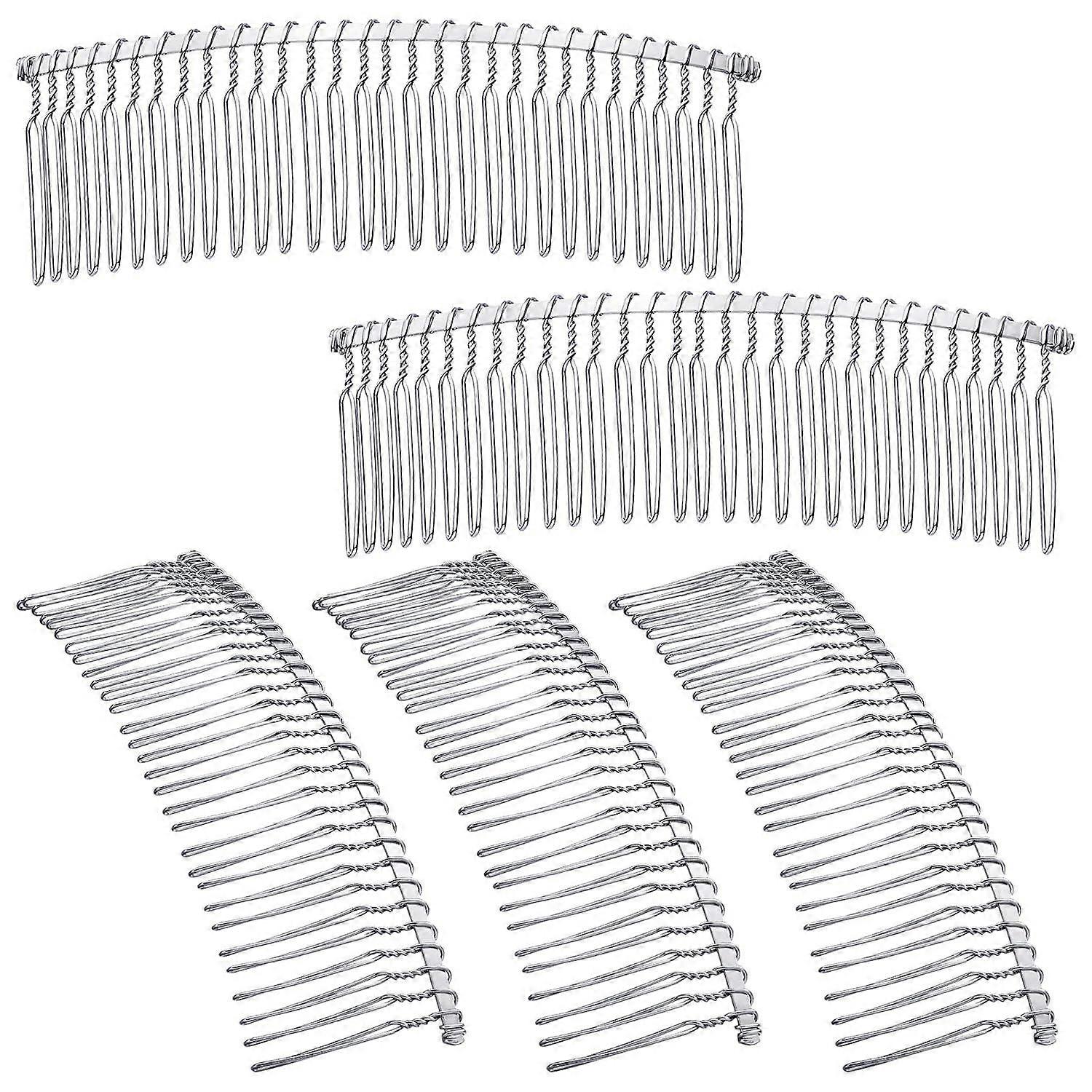 5 Pcs Platinum Metal Wire Hair Combs, 30 Teeth Wire Twist Bridal Wedding Veil