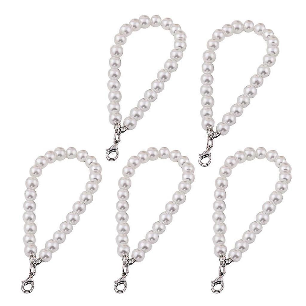 5 Pcs Faux Pearl Wristlet Chain Strap Keychain Fashionable Hand Wrist Lanyard