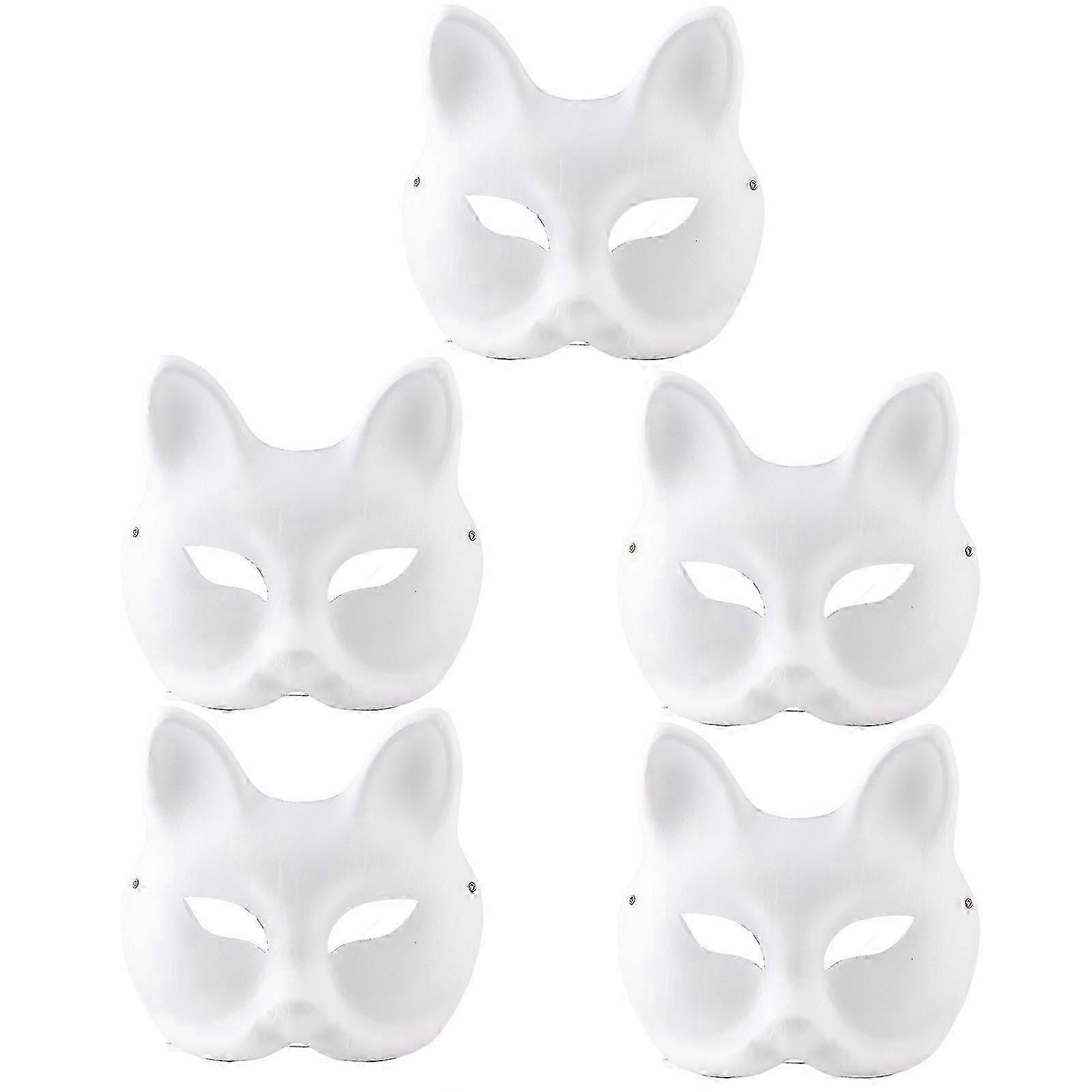 5 Pcs White Mask Adult Blank DIY Drawing Mask Halloween Costume Party Accessory(Cat Face)