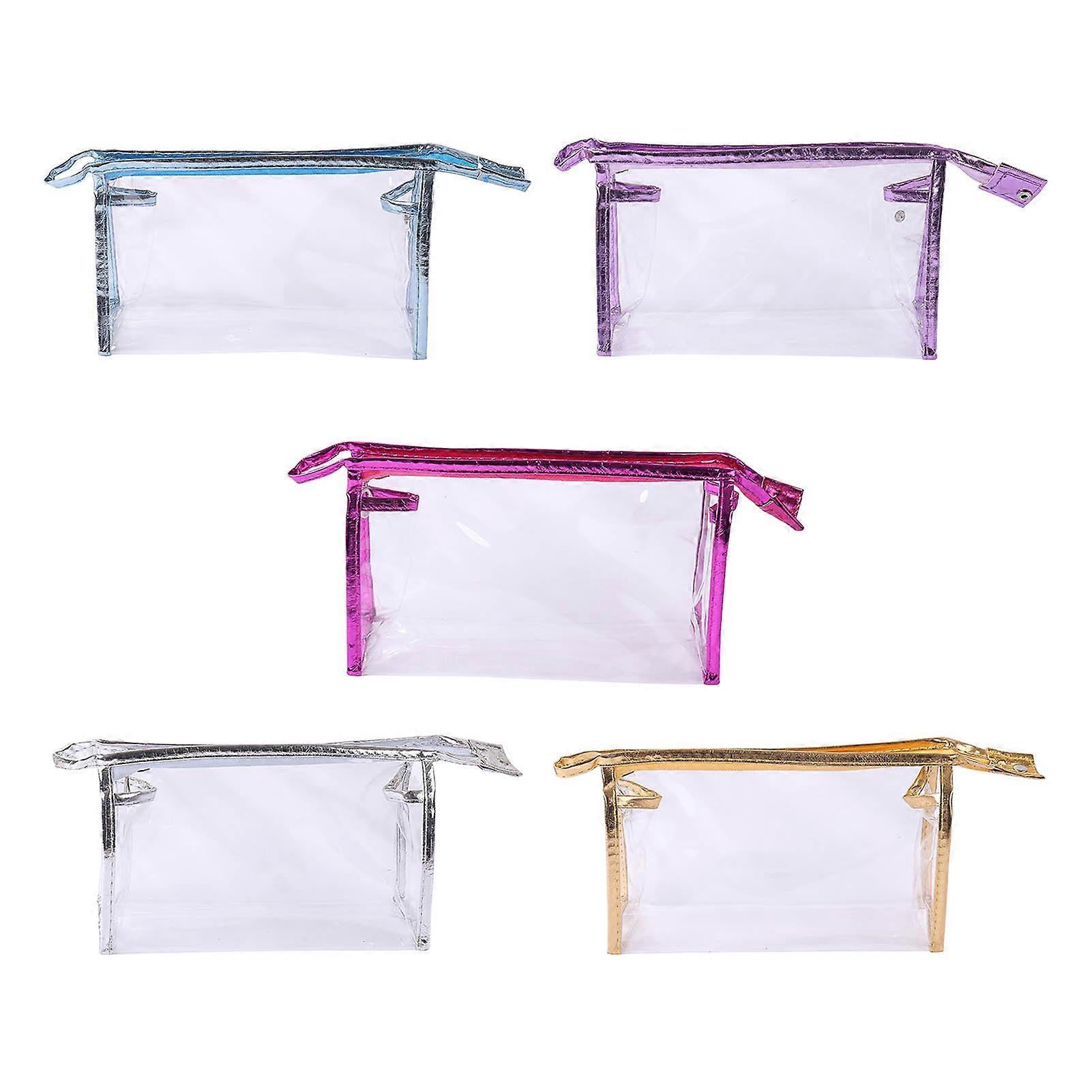 5PCS Clear Cosmetic Bag Five Colors Transparent Fashion PU Leather Handbag Makeup Bag Travel Storage Bag