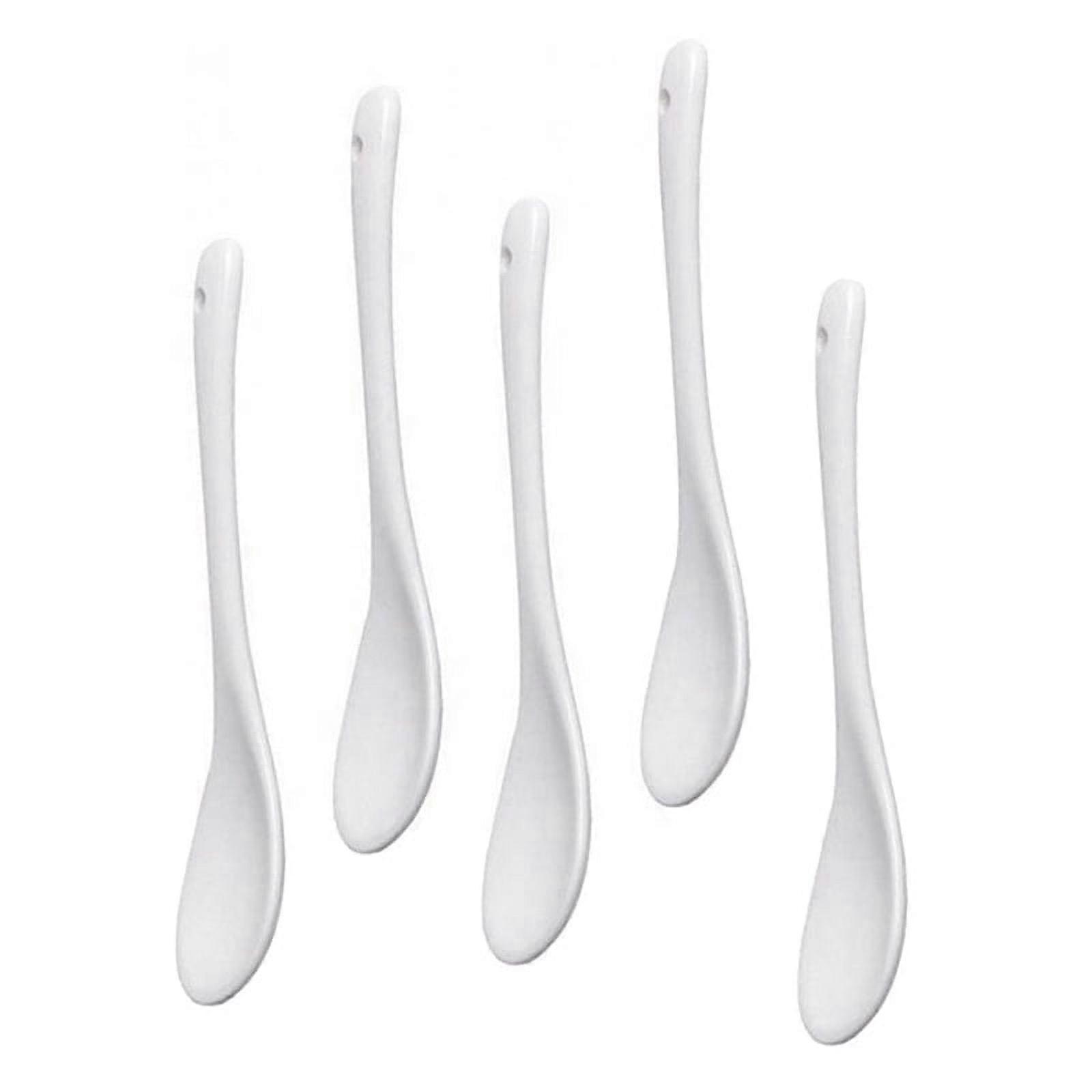 5PCS White Porcelain Egg Spoons Ceramic Spoons Coffee Spoon Dessert Spoon Mocha Dip Serving Spoon