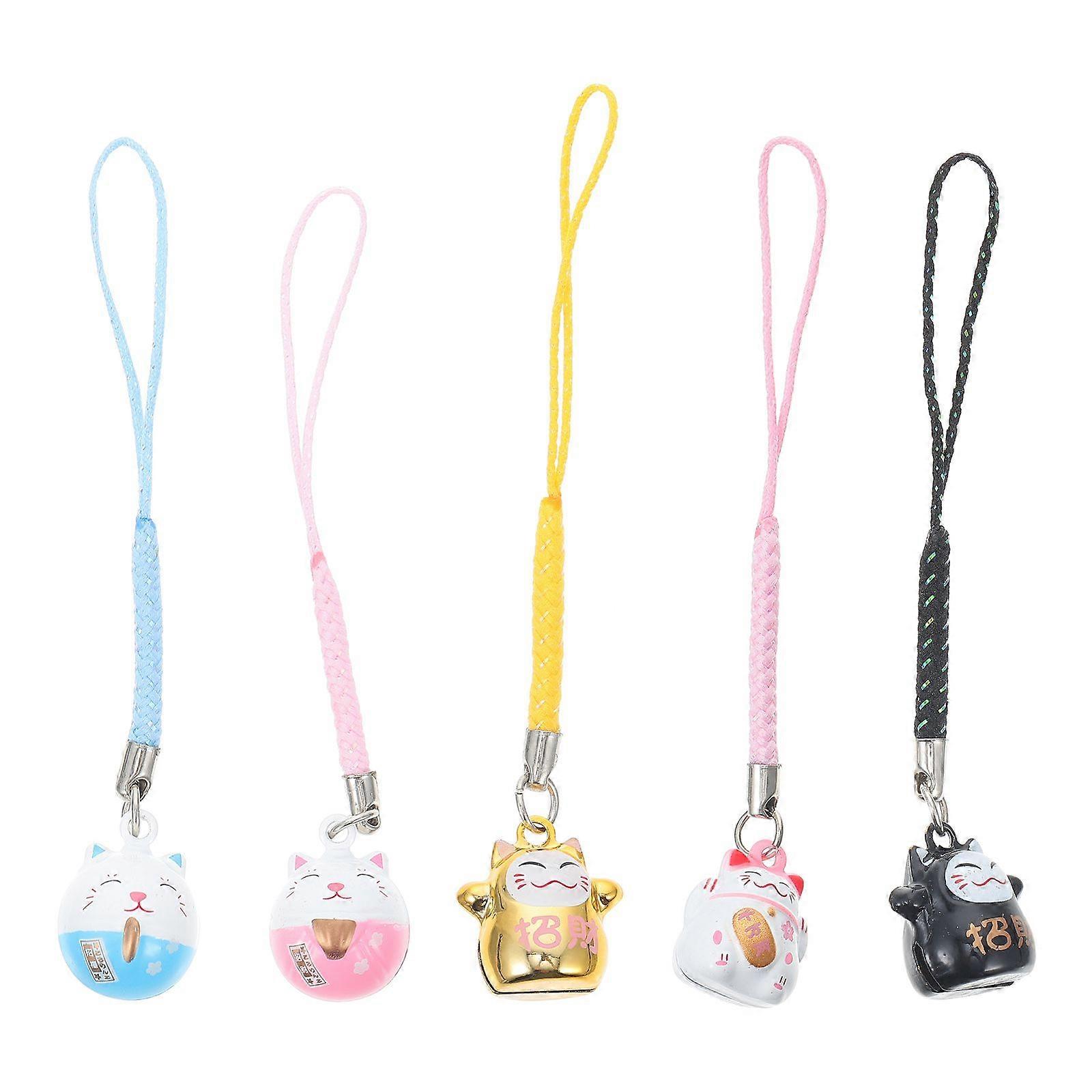 5Pcs Beckoning Cat Keychains with Bell Pet Bell Pendant Phone Lanyard Decor
