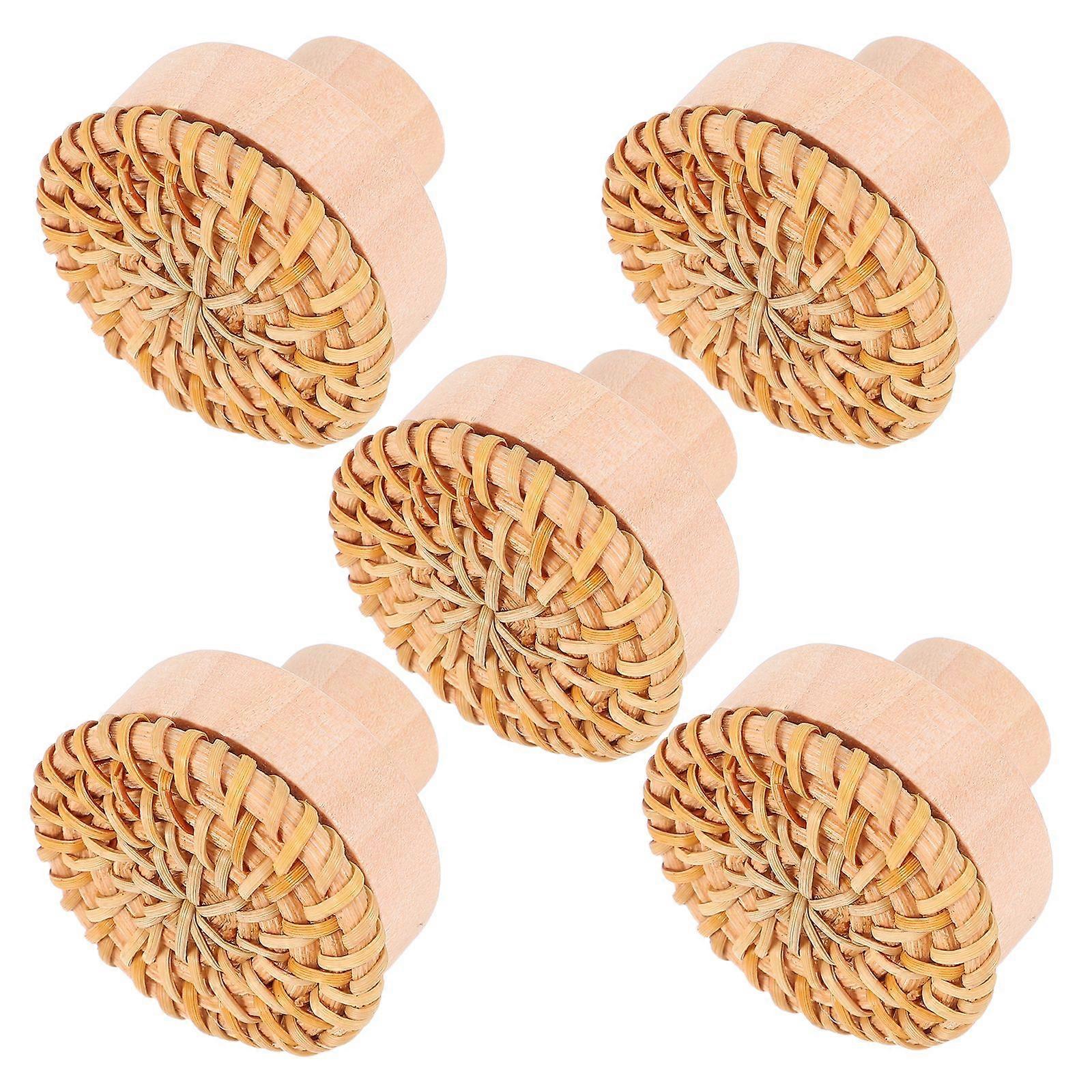 5pcs Rustic Rattan Woven Round Hooks Decorative Wall Hangers For Keys Bags Scarves Towel Hook Home Living Room Boho Decor