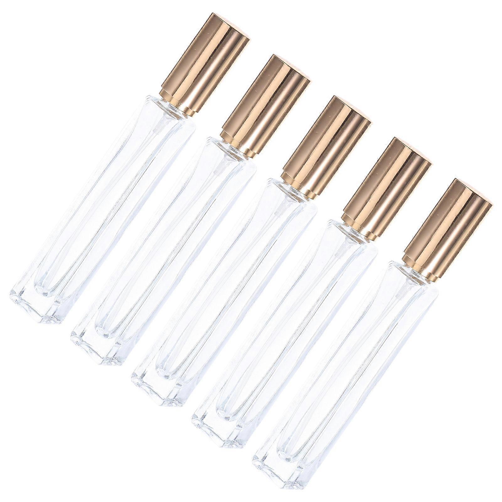 5Pcs Perfume Spray Bottles Empty Glass Containers Mini Liquid Dispenser for Home Outdoor (Golden Lid)